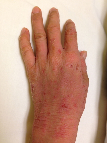 調理師、美容師、理容師など、毎日頻繁に水仕事を行う人によく見られる、程度のひどい手荒れ全般をさしています。